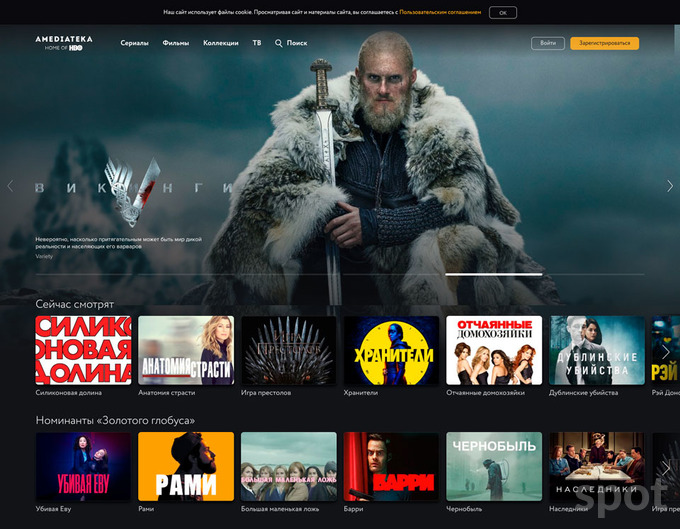 Главное достоинство сервиса — премьеры лучших сериалов западных студий, которые выходят одновременно со всем миром. На сайте также доступна вся библиотека HBO, хиты ведущих телеканалов и студий мира (FOX, Showtime, Starz, BBC, CBS, Sony Pictures).