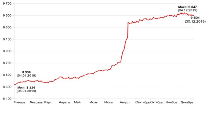 В целом, в течение 2019 года курс национальной валюты к доллару США девальвировался на 13,9% по сравнению с началом года (с 8341 до 9501 сум/долл.).