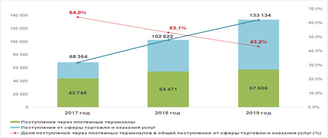 В итоге, в 2019 году доля расчетов посредством банковских карт снизилась с 53,1% до 43,2%.