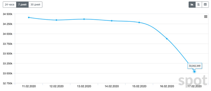 17 февраля каналы потеряли еще несколько сотен тысяч подписчиков, следует из данных Uztelegram.com. Общее количество достигло 4 млн аккаунтов: