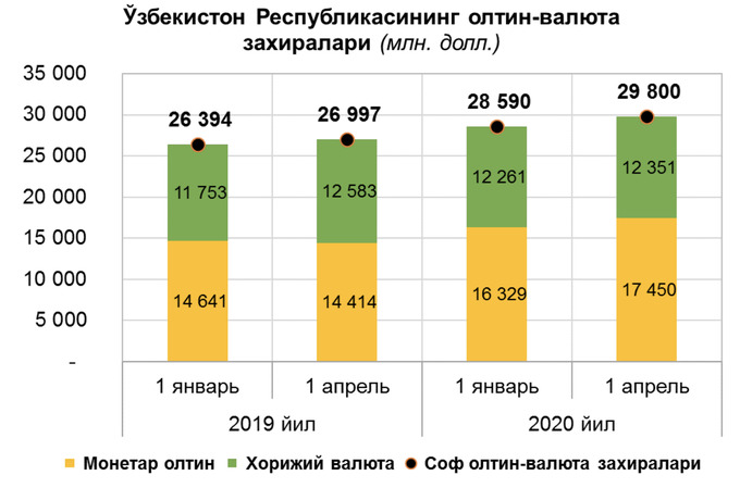 Ранее в Центральном банке отмечали, что 2019 году, при неизменных ценах, золотовалютные резервы увеличились на $237 млн, тогда как курс сума к доллару США девальвировался на 13,9%.