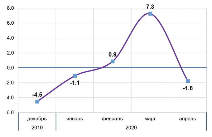 В апреле, в результате выравнивания обменного курса, разница, как можно увидеть на графике, покрылась. Это укрепит конкурентноспособность отечественных производителей на рынках и приведет к повышению экспорта.
