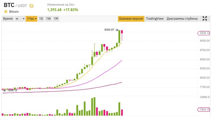 Биткоин подорожал до $9200. За сутки его цена выросла на 18%, сообщает РБК.