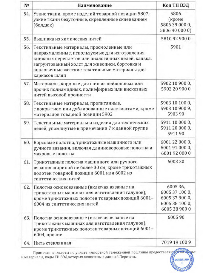 Согласно указу, импортируемое сырье и материалы для текстильной и швейно-трикотажной промышленности освобождаются от уплаты таможенных пошлин до 1 января 2022 года.