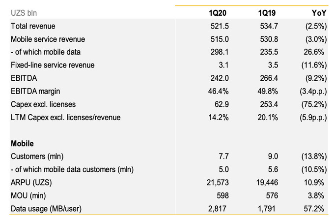 Общая выручка за квартал снизилась на 2,5% по сравнению с аналогичным периодом прошлого года до 521,5 млрд сумов. В компании объяснили это новой методологией акцизного сбора и регистрацией по IMEI.