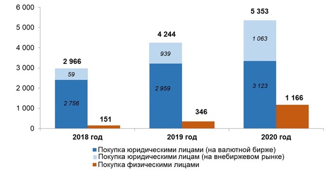 С начала текущего года они составили $1,5 млрд и находились в пределах объема монетарного золота, купленного у отечественных предприятий-производителей: