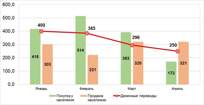 В последние десять дней апреля среднедневной объем иностранной валюты, продаваемой населением, увеличился в 2,5 раза, составив $9,6 млн.