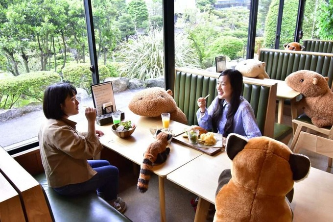 Японский зоопарк Изу-Шаботен (Izu Shaboten Zoo) открылся после карантина 16 мая. Кроме масок и дезинфицирующих средств, в ресторане «Лесные животные» используют для социального дистанцирования плюшевые игрушки в виде зверей, которые живут в зоопарке. Среди них — капибары, малые панды и жирафы: