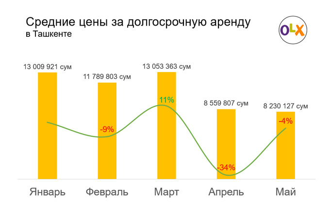 Пандемия оказала существенное влияние и на рынок аренды жилья. По данным OLX, цены снижаются второй месяц подряд.