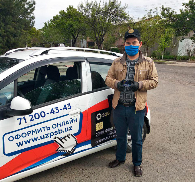 Доставка карт «Узпромстройбанком». Фото: пресс-служба банка.