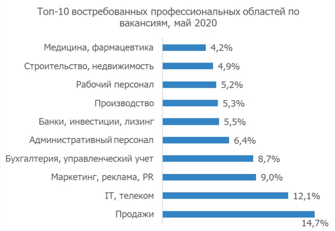 Со стороны соискателей до карантина пользовались популярностью профессиональные области: