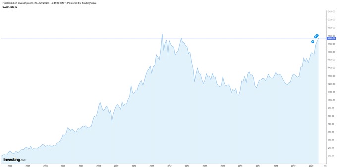 23 июня спотовая цена золота выросла на 0,69%, до $1 769,0 за унцию. Подорожанию золота способствует слабый доллар и ожидания увеличения мер поддержки экономики. Министр финансов США Стивен Мнучин заявил, что новый пакет мер по поддержке экономики может быть принят уже в июле и будет направлен на увеличение рабочих мест.