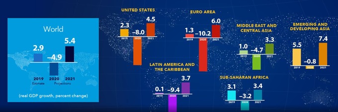 Массовые сокращения рабочих мест и закрытие предприятий повлияло на то, что мировая экономика будет восстанавливаться гораздо медленнее, и на текущий момент МВФ прогнозирует 5,4-процентный глобальный рост в 2021 году. А это намного ниже прогнозов, которые были опубликованы до пандемии.