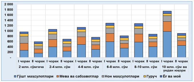 Совокупный доход на душу населения за первое полугодие 2020 года составил 5,2 млн сумов. Лишь в Ташкенте, Навоийской, Бухарской и Ташкентской областях этот показатель оказался выше среднереспубликанского.