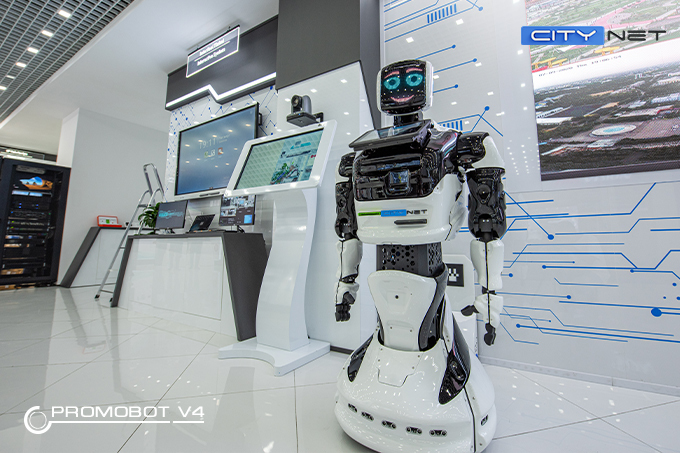 Компания CityNet представляет сервисный робот для бизнеса — Promobot V4. Он общается с людьми, отвечает на вопросы, свободно передвигается и подключается к внешним системам и сервисам. Его можно применять в качестве консультанта, промоутера, администратора, экскурсовода и так далее. Владелец робота может легко добавлять в программу Promobot V4 новые фразы, создавать собственные движения, эмоции.
