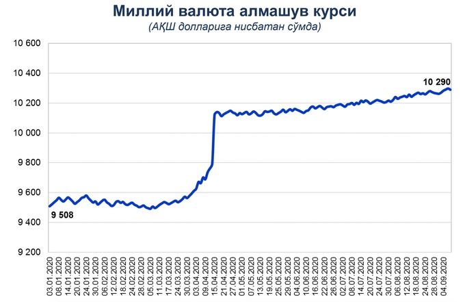 Он обратил внимание, что после апрельского обвала сум смог стабилизироваться. Общая девальвация в январе-августе составила 8%. Серьезных колебаний в будущем не ожидается. Правда, как отметил Мамаризо Нурмуратов, нельзя забывать о влиянии событий в мире: