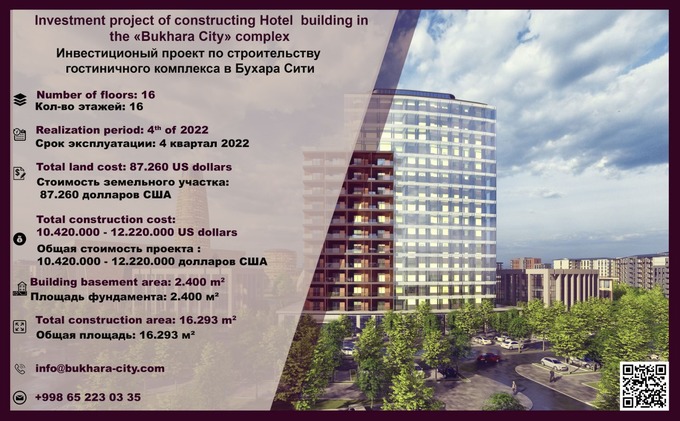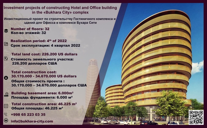 На днях Департамент развития туризма Бухарской области пригласил предпринимателей к сотрудничеству в рамках Bukhara City. Информация об инвестиционных проектах: