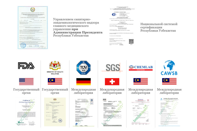 - Аккредитованной лабораторией при Департаменте стандартов Малайзии CAWSB.