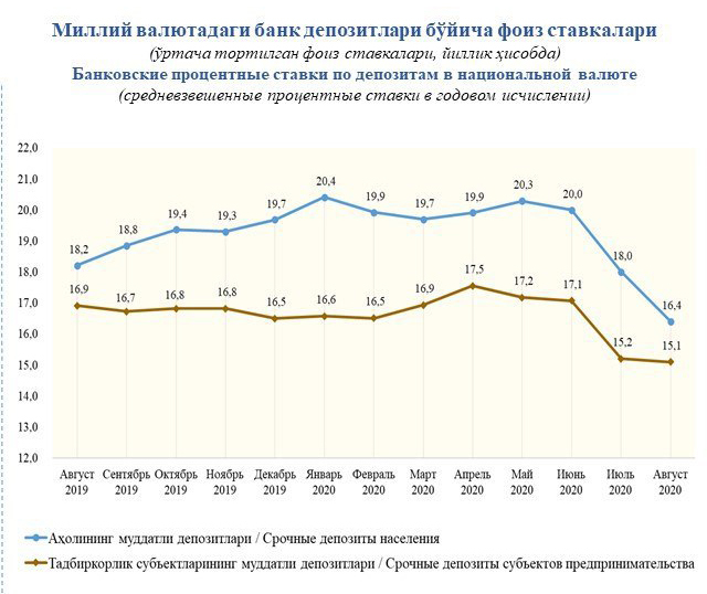 Банки последовали рекомендации регулятора и снизили ставки сумовых вкладов до 18%. Ранее максимальная ставка по депозитам в национальной валюте составляла 23−24%.