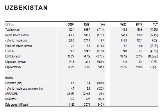 Cкорректированная EBITDA в Узбекистане снизилась на 50% (в долларовом выражении) и 43% (в местной валюте) в годовом исчислении. Это было в первую очередь обусловлено снижением доходов, как описано выше, при этом операционные расходы оставались относительно стабильными, заметили в компании.