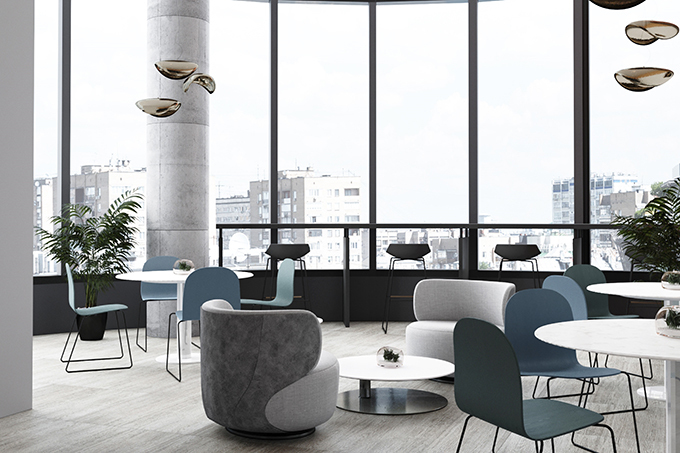 Прямоугольные диваны и мягкие квадратные пуфы ярких оттенков напомнят об еще одном богемном стиле — авангарде, который также нашел место в БЦ Orient. Бескаркасная мебель оптимально вписывается в это стилевое направление.