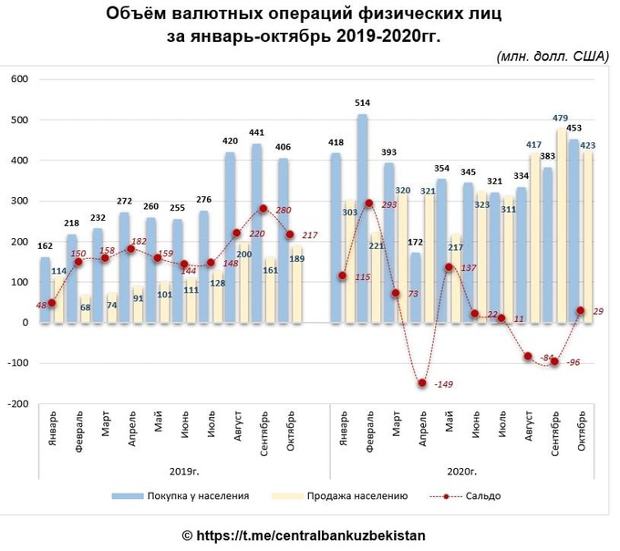В январе-октябре население купило в банках иностранную валюту на $3,3 млрд, что в 2,7 раза больше, чем за те же месяцы прошлого года. Продажи, для сравнения, составили $3,7 млрд (+25%).