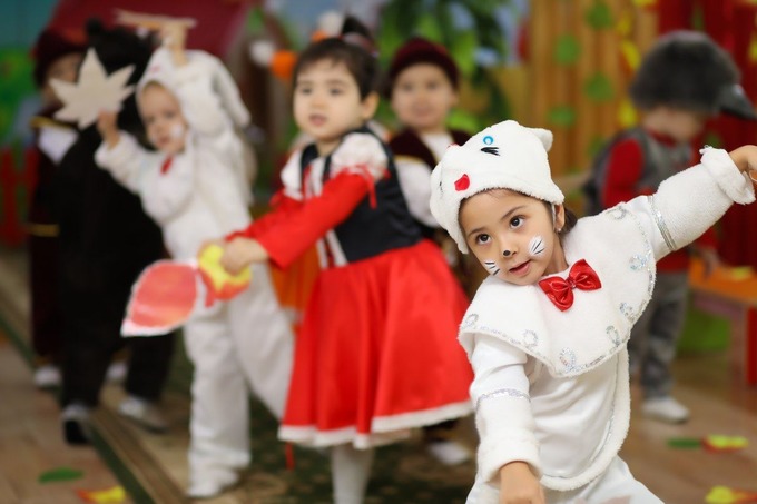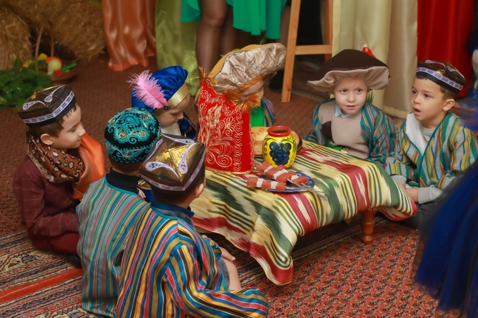 В садике на улице Мукими есть своя театральная студия с костюмерной. Дети ставят сценки, постановки и даже полнометражные часовые мюзиклы, такие как «Золушка» и «Снежная королева» — готовые постановки дети представили своим родителям на сцене Музыкального театра им. Мукимий, почувствовав себя настоящими актерами.