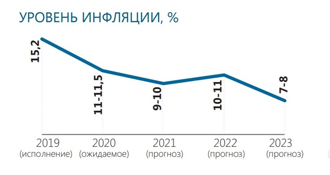 В 2021 году и последующие два года уровень инфляции прогнозируется на уровне 8−11%.