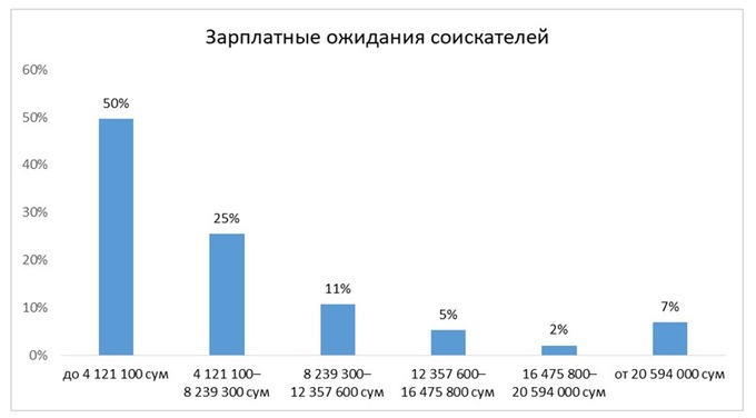 Наиболее востребованный уровень зарплатных ожиданий кандидатов составляет до 4 121 100 сум ― половина всех ожиданий.