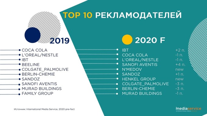 В исследовании специалисты проанализировали состав участников медиарынка и вывели рейтинг самых крупных рекламодателей страны. Как видно, участники остались практически неизменными с прошлого года, поменялись лишь их затраты на рекламный бюджет: