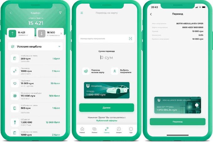 В Zoomrad одна из самых низких комиссий за переводы между картами — 0,5%, между картами Aloqabank — 0%. Отправить деньги можно на карту любого банка страны. Здесь также можно воспользоваться функцией сканера, чтобы не вводить данные вручную.