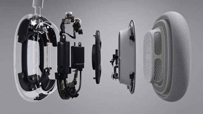 В AirPods Max установлен 40-миллиметровый динамический драйвер, разработанный Apple. Два чипа Apple H1, в которых установлено 10 ядер для обработки аудио, способных выполнять 9 млрд операций в секунду.