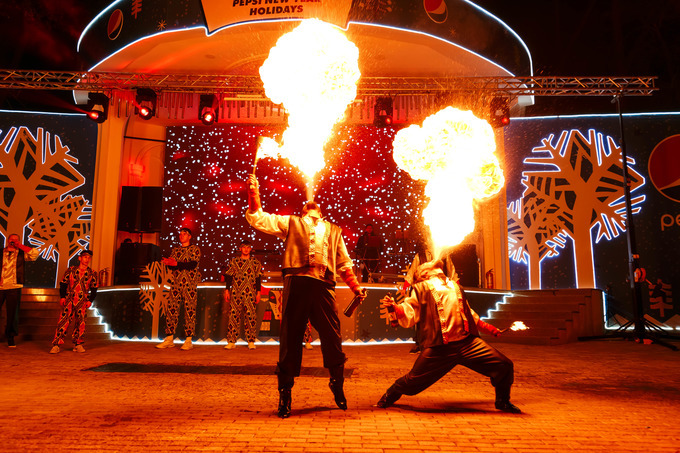 Главная шоу-программа начинается вечером. Среди хедлайнеров новогодних каникул Pepsi — Севара Назархан, Тохир Садыков, DJ Piligrim, группа «Сахар», Сабина Мустаева. Также на сцене выступают музыкальные коллективы Di Live, «Матин» и «Фано», танцевальный коллектив Double Touch, Fire Show Satira.