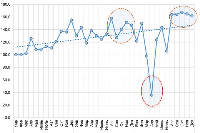 «Тем не менее, к августу 2020 года ситуация на рынке недвижимости и авторынке вернулась к своей долгосрочной тенденции, что говорит о восстановлении спроса населения», ― говорят специалисты.