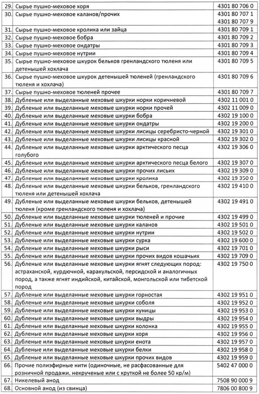 Документ утверждает перечень сырья, материалов и фурнитуры, при ввозе которых на территорию страны до 1 января 2023 года применяется нулевая ставка таможенной пошлины: