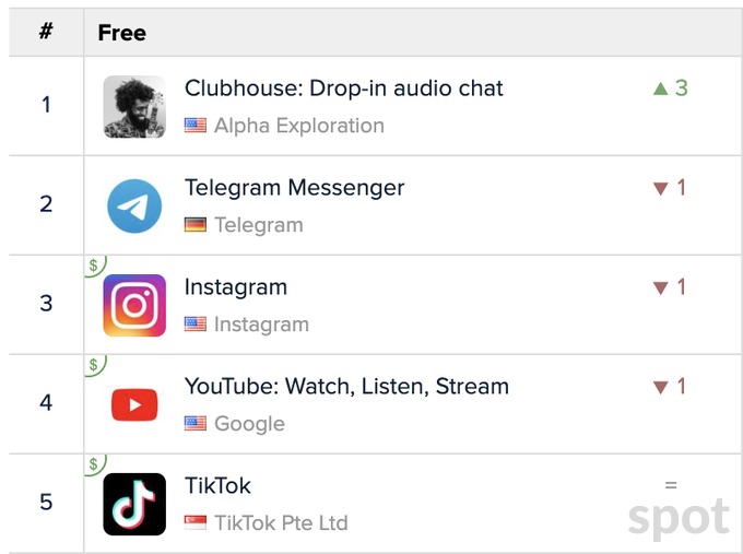 Clubhouse поднялся на первое место по количеству скачиваний для iOS в Узбекистане, следует из данных сервиса мобильной аналитики App Annie: