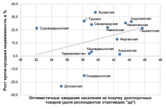 По регионам самые высокие темпы роста были в Самаркандской и Сурхандарьинской областях.