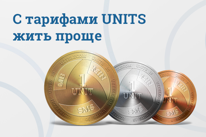 UZTELECOM предлагает тарифы серии UNITS. По ним достаточно оплатить UNIT’ы, и уже не важно, что тратится — минуты, мегабайты и SMS. Больше нет ненужных лимитов услуг, которые не используются. Также, если закончились юниты раньше времени, с услугой RESTART всегда можно приобрести дополнительные объемы услуг и продолжать пользоваться по выгодным ценам, не думая о ежемесячных ограничениях обычных тарифов.