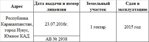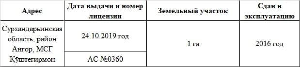 Дополнительная информация доступна на сайте Агентства по управлению государственными активами и торговой площадке E-Ijro Auksion.