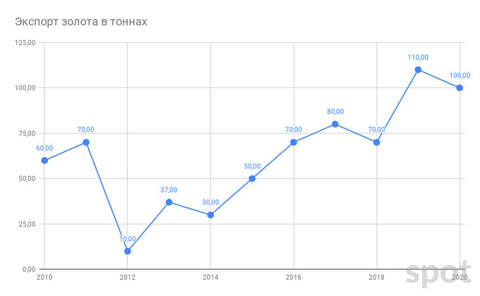 Это необычная ситуация, потому что именно золото вот уже несколько лет является основным экспортом республики. Порой на него приходилось 50% и больше.