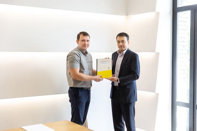 На фото: CFO Makro Supermarkets Владимир Исмаилов, представитель Ernst & Young LLP в Узбекистане Анвар Азамов.