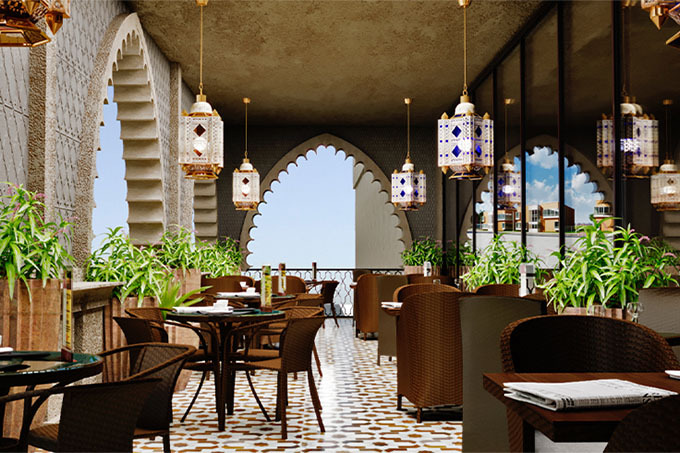 ТРЦ представляет собой комплекс, построенный в марокканском стиле. Центр спроектирован и выполнен в сочетании благородных арабских, африканских и средиземноморских мотивов с современными архитектурными решениями. Это позволило создать неповторимый образ и объединить Восток и Запад в единое звучание. Стилевые решения дополняются разнообразием внутренних составляющих, таких как досуг, развлечения, отдых и покупки.