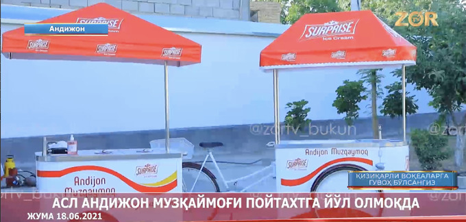 Предприниматель рассказал телеканалу Zo’r TV, что занимается мороженым уже 15 лет, пять лет назад начал выпускать «Андижанское мороженое». После того, как название стало популярным, появилось множество людей, которые решили этим воспользоваться.