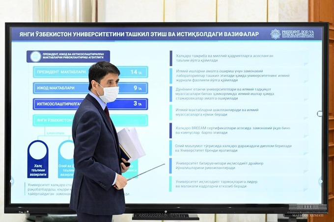 Президент Шавкат Мирзиёев ознакомился с презентацией по организации учебного процесса в университете «Новый Узбекистан», передает пресс-служба главы государства.