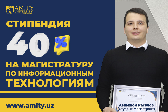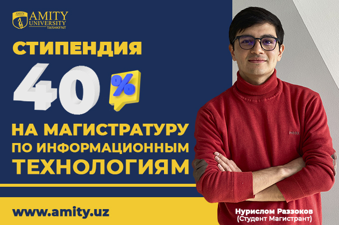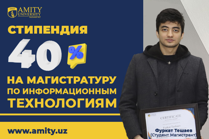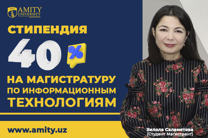 У поступающих в магистратуру по направлению IT в Университет Амити в Ташкенте есть возможность получить стипендию в размере 40%. Продолжительность обучения в магистратуре по этому направлению — два года (четыре семестра).