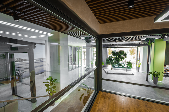 Управлять системой можно дистанционно с помощью пульта. Створки безрамной конструкции открываются и закрываются по вертикали. Когда они закрыты, возникает панорамная стеклянная стена. При их опущении образуется открытое пространство. Створки двигаются практически бесшумно, а также легко снимаются изнутри для влажной уборки.