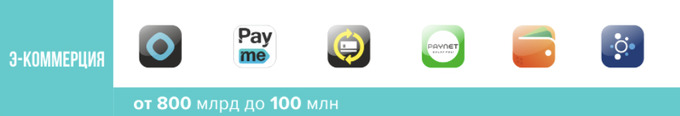 По e-commerce лидерство у CLICK. Далее идут Payme, Beepul, Paynet и Oson. Здесь суммы в два раза больше — 800 млрд сумов у самого крупного игрока: