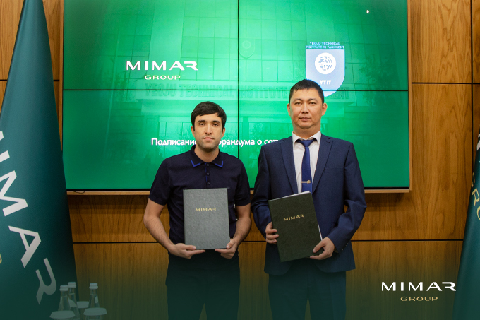 Строительная компания MIMAR Group и Технический институт Ёджу в Ташкенте подписали меморандум о сотрудничестве, направленный на поддержку и подготовку кадров в сфере архитектуры и строительства.