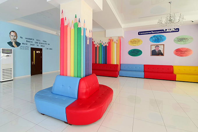 Изначально я планировала организовать учебный центр. Думать об открытии целой школы я просто боялась. Но когда нашли здание — первое, недалеко от станции метро «Буюк Ипак йули», мы поняли, что это должна быть школа. Именно такая школа, о которой я мечтала для своих детей. Получается, в феврале-марте 2018 года мы решили создать школу, а в сентябре мы ее уже открыли. Тогда, три года назад, такой серьезной конкуренции на рынке не было. Было несколько частных школ, большая часть из которых принимала до 200−300 человек. И остальные — государственные. Мы же замахнулись на масштабы. Сегодня первая школа у нас рассчитана на 800 человек и вторая — на 450″, — поведала историю появления школы Хилола Саидаменова.
