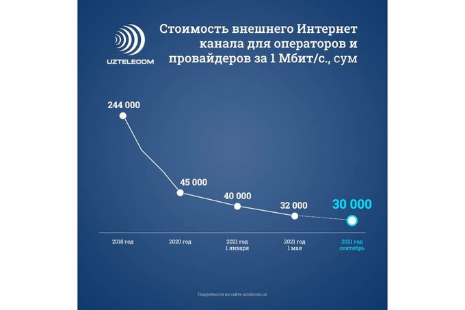«Узбектелеком» с сентября снизил стоимость каналов, предоставляемых операторам и провайдерам через Международный центр пакетной коммутации (МЦПК), до 30 тыс. сумов за 1 Мбит/с, сообщила пресс-служба компании.